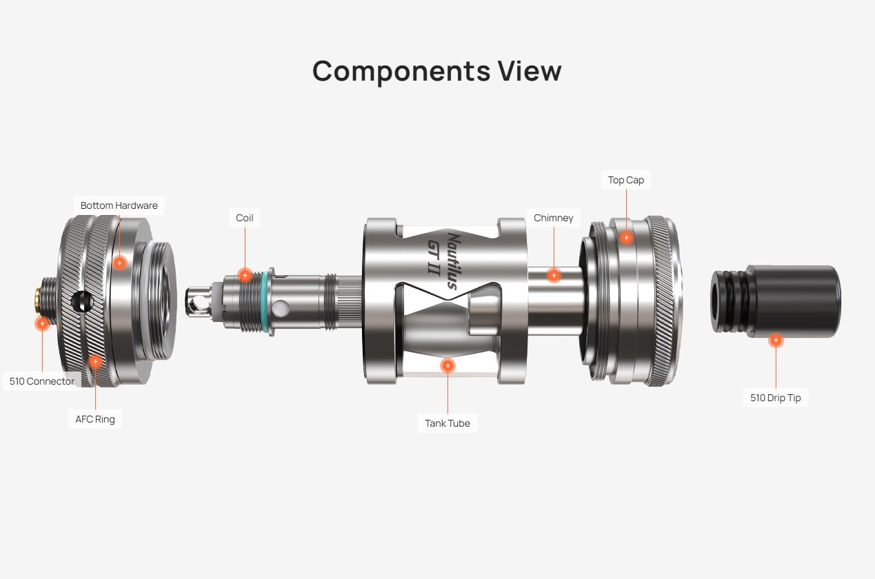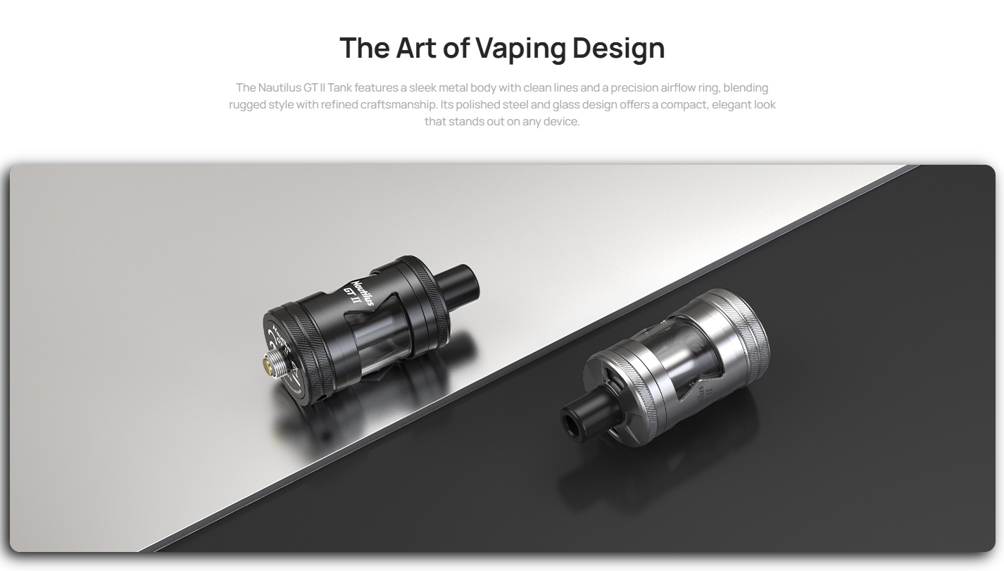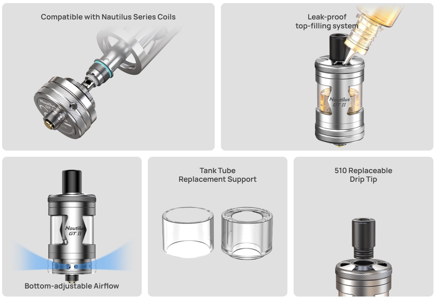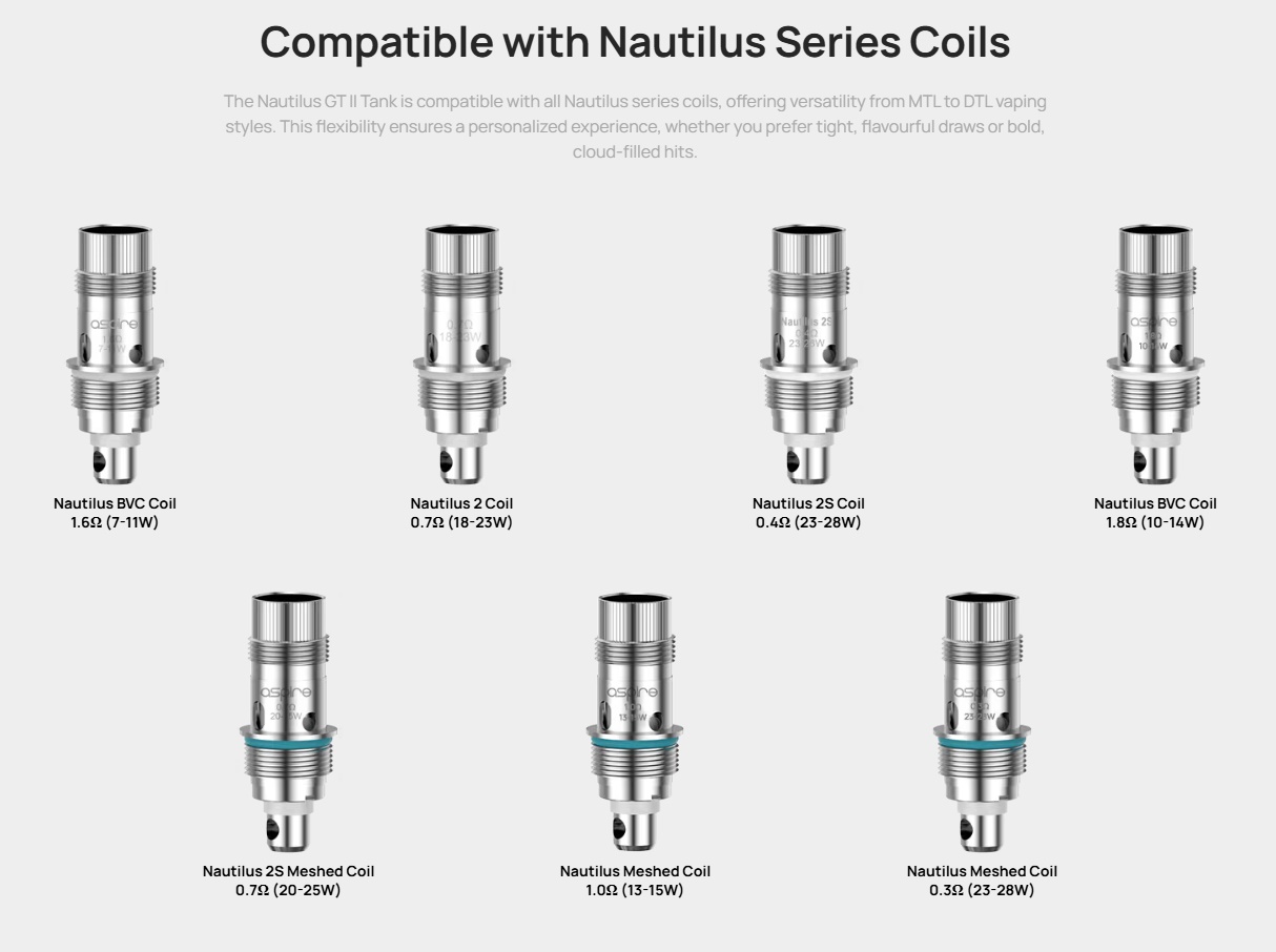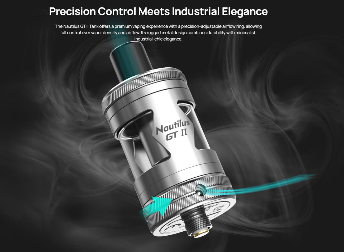 Ein Feature, welches Nautilus-Fans noch vom Ur-Nautilus kennen, ist die kugelgelagerte Airflow Control. Durch diese verstellt sich die eingestellte Airflow nicht von selbst. Durch die verfügbaren Einstellmöglichkeiten eignet sich der Nautilus GT2 sowohl für MTL als auch RDL. Natürlich passen alle bisher verfügbare Nautilus BVC Coils.
