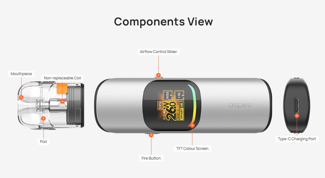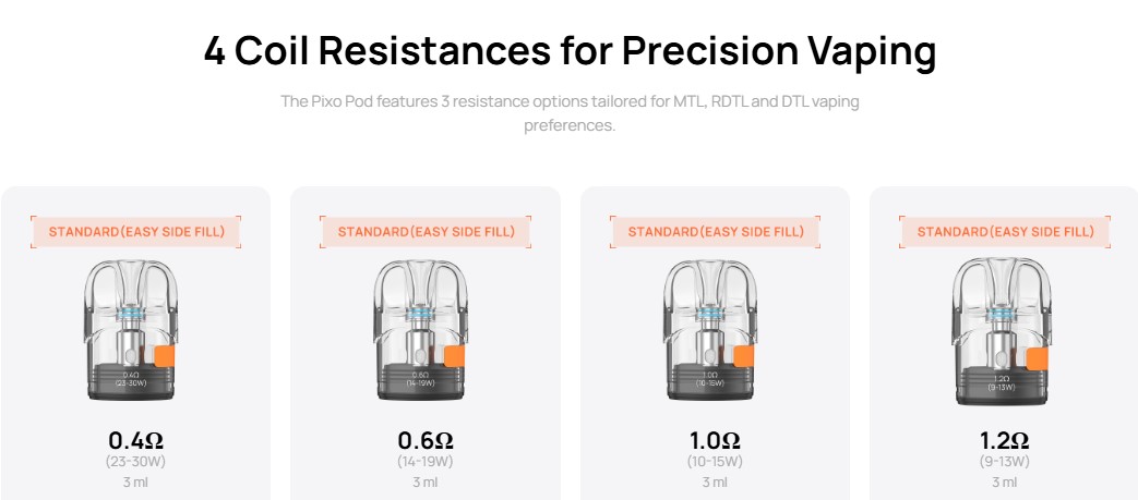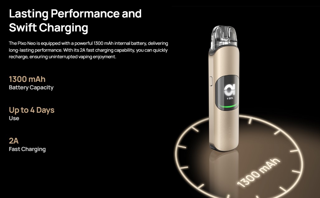 Mit dem Pixo Neo bringt Aspire nicht etwa einen Nachfolger für den Pixo, sondern eine Ergänzung. Das Aspire Pixo Neo Podsystem bietet einige Änderungen im Vergleich zum Pixo Podsystem, wobei der augenfälligste Unterschied der Wegfall des Touch Displays ist. Dafür erhielt der Pixo Neo einen grösseren Akku mit 1300mAh, welchen man über den USB Type-C an der Unterseite mit 2A/5V laden kann. Natürlich passen auch beim Pixo Neo alle Pixo Pods, Aspire bringt mit dem Pixo Neo jedoch auch gleich noch einen neuen Widerstand, den 1,2 Ohm Pod. Dieser eignet sich perfekt für MTL.