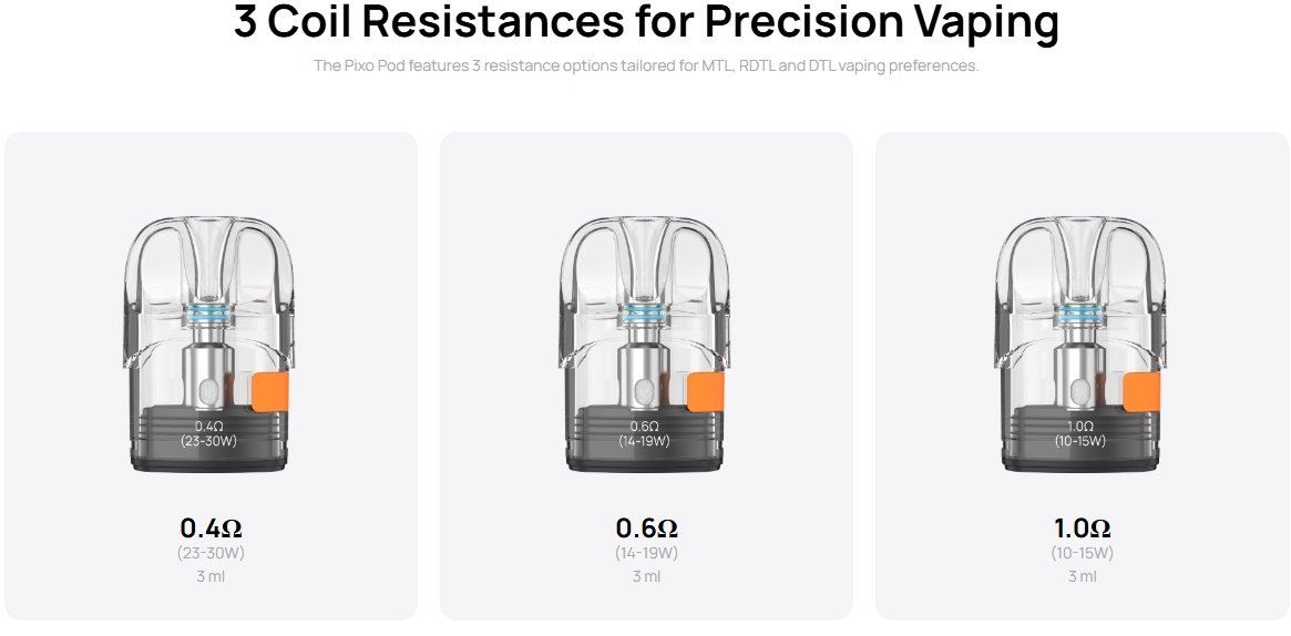 - 1x Aspire Pixo Podsystem