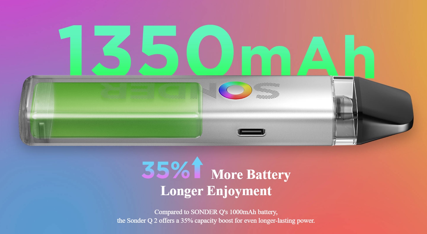 Der Geekvape Sonder Q2 ist ein einfaches Podsystem für all jene, die einfach nur dampfen wollen. Als Pod kommen die Q Pods zum Einsatz, welche schon in den Wenax Q Modellen genutzt werden. Dadurch erhält man eine grosse Bandbreite an 2ml und 3ml Pods von 0,4 Ohm bis hin zu 1,2 Ohm. Der Geekvape Sonder Q2 hat eine maximale Leistung von 30W, die Leistung legt das Gerät automatisch fest. Der festverbaute Akku hat eine Kapazität von 1350mAh und lässt sich dank des USB Type-C Anschlusses zügig wieder laden.