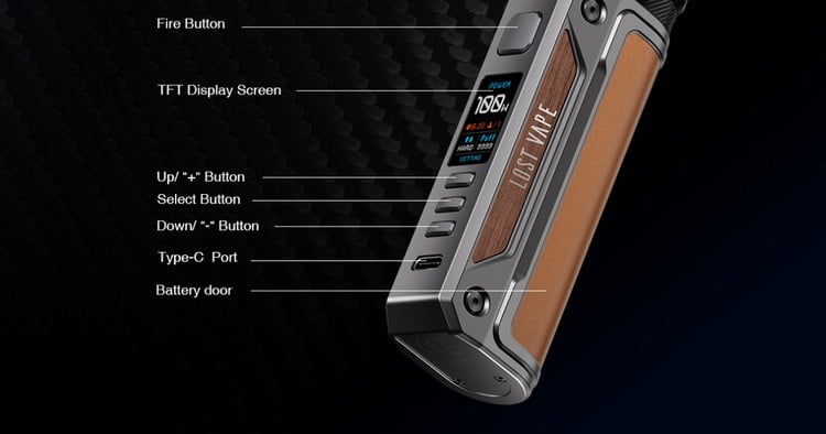 Das ergonomische Gehäuse besteht aus einer robusten Zinklegierung, die je nach Modell mit hochwertigem Leder oder Kohlefaser veredelt ist. Mit der schlanken Form und einem Gewicht von nur 150 g liegt der Akkuträger angenehm in der Hand und ist leicht transportierbar. Nutzer können bis zu drei Leistungsprofile speichern, um schnell zwischen persönlichen Einstellungen zu wechseln.