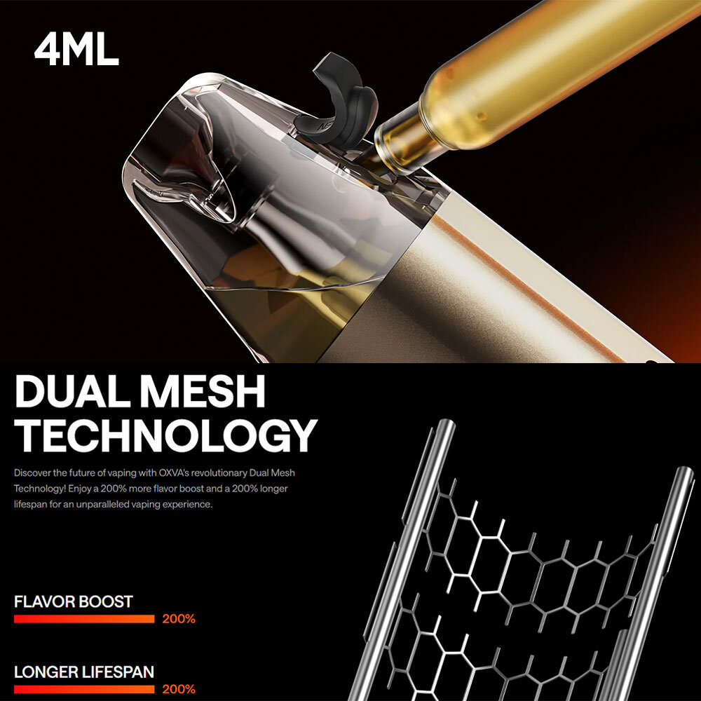 Die Dual Mesh-Technologie des OXVA NeXlim sorgt für ein Geschmackserlebnis der Extraklasse. Im Boost-Modus erlebst du bis zu 200 % intensiveren Geschmack, während der Eco-Modus die Lebensdauer der Pods erheblich verlängert. Mit drei verschiedenen Widerständen (0.6/0.8/1.2Ω) und sechs einstellbaren Dampferlebnissen von MTL bis RDL passt sich das NeXlim perfekt deinen persönlichen Vorlieben an.