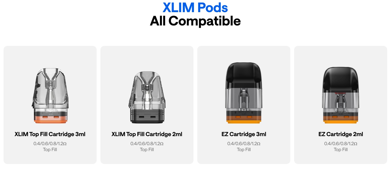 • Kompatibel zu allen Xlim Pods (Top-Fill & EZ, 2.0 / 3.0 ml)