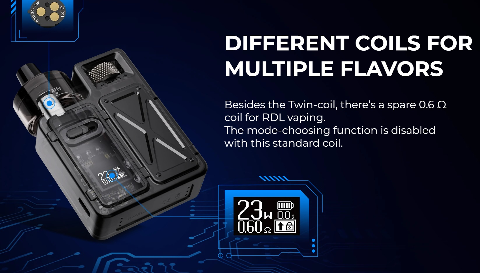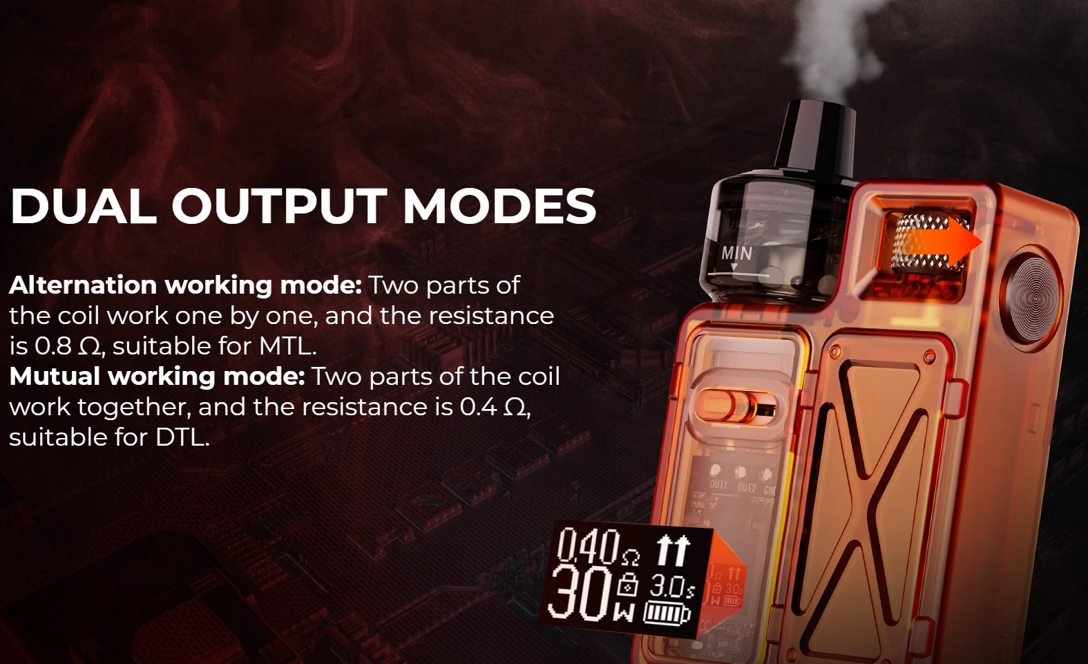 • mitgelieferte Coils: 0,4/0,8 Ohm M Twin-Coil: 0,4 Ohm 30W bis 35W