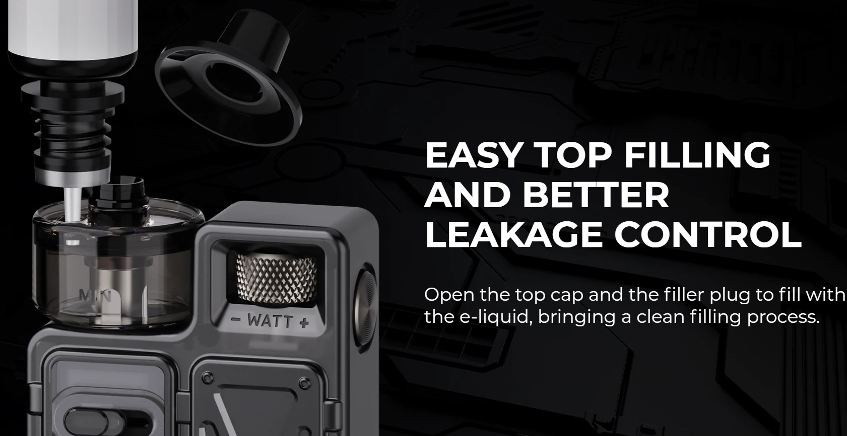 Nach dem Crown D hat Uwell nun das Crown M Kit an den Start gebracht. Beim Uwell Crown M Kit handelt es sich aber nicht einfach um eine abgeänderte Version des Crown D, sondern um ein völlig neues Konzept. Formtechnisch erinnert der Crown M an ein Side-by-Side Kit, wobei dies ein Stück weit auch zutrifft. Denn der Pod sitzt beim Uwell Crown M nicht etwa mittig auf dem Akku, sondern in einer Vertiefung seitlich versetzt. Auf der anderen Seite befindet sich der Drehregler, über welchen man die Leistung und den Coil-Modus einstellen kann. Der Pod hat ein Füllvolumen von 4ml und lässt sich dank des Top Filling sehr bequem und zügig befüllen.