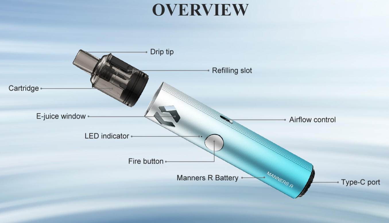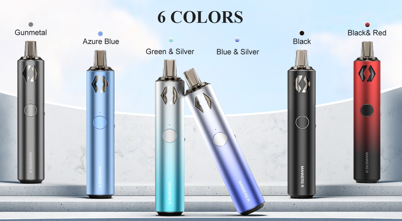 Vapefly bietet für den Manners R Pods mit 4 verschiedenen Widerständen an: 0,6 Ohm, 0,8 Ohm, 1,0 Ohm und 1,2 Ohm. Dadurch lässt sich der Pod Mod ganz der eigenen Dampfvorliebe nach anpassen. Der Vapefly Manners R verfügt über einen Feuertaster und eine Zugautomatik, wobei sich der Feuertaster auch sperren lässt und dann nur die Zugautomatik aktiv ist. An der Seite des Gerätes befindet sich ein Slider zum einstellen des Zugwiderstandes.
