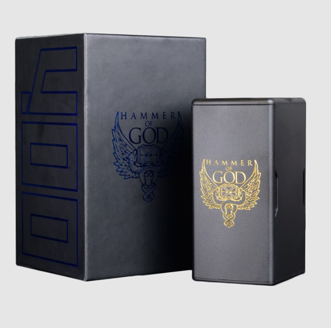 Der Hammer of God von Vaperz Cloud gab es bisher nur als mechanischen Akkuträger, doch nun hat Vaperz Cloud auch eine Version mit Chip am Start: den Vaperz Cloud Hammer of God 400W. Für den Betrieb des HoG 400W benötigt man 4x 18650 Akkus (nicht inbegriffen), diese werden von hinten in den Mod eingelegt und über ein Daumenschraubsystem gesichert. Der Akkuträger gehört trotz der 4 Akkus eher zu den kompakteren in diesem Segment mit einer Höhe von nur 85,5mm, 41mm Breite und 49mm Tiefe. Im Hammer of God kommt der Hotswap 400 Chip von Vaperz Cloud zum Einsatz, damit lässt sich eine Leistung von bis zu 400W abrufen. Nebst dem Watt Modus liefert der Chip auch noch Volt und Bypass (ungeregelt).