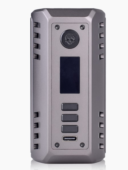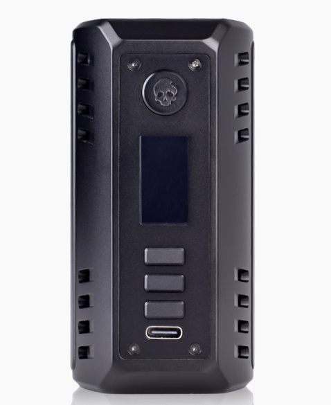 An der Frontseite befindet sich das 0,96" grosse Display, welches in verschiedenen Farben erstrahlen kann. Darüber befindet sich der Feuertaster, darunter die Tasten für Plus, Minus und das Menü. Da der Vaperz Cloud Odin V2 aus Aluminium hergestellt wird, wiegt er trotz seiner Grösse nicht sehr viel. An der Oberseite befindet sich der gefederte 510er Anschluss, welcher Verdampfer mit bis zu 30mm Durchmesser ohne Überhang aufnehmen kann. An der Frontseite befindet sich ebenfalls der USB Type-C Anschluss, über welchen man die Akkus laden und die Firmware updaten kann (wir empfehlen die Akkus immer extern mit einem Ladegerät zu laden und nicht über USB).