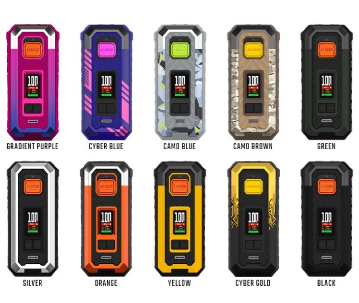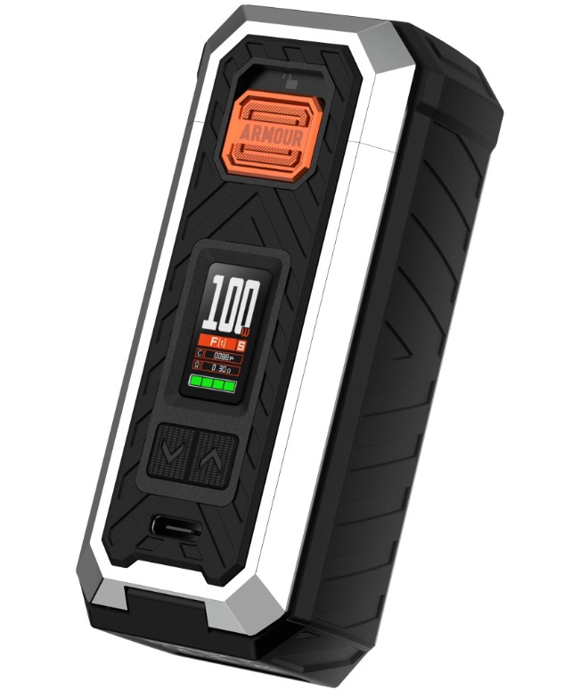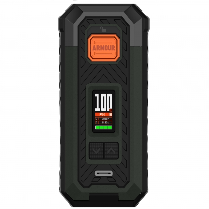 Die Bedienung des Armour S Akkuträgers ist dank des 0.96-Zoll-TFT-Farbdisplays ein Kinderspiel. Über die intuitive Menüführung können Sie alle Einstellungen schnell und einfach vornehmen. Zudem hält Sie das Display jederzeit über alle wichtigen Dampfparameter auf dem Laufenden. Mit dem universellen 510er-Anschluss ist der Akkuträger kompatibel mit einer Vielzahl von Verdampfern.