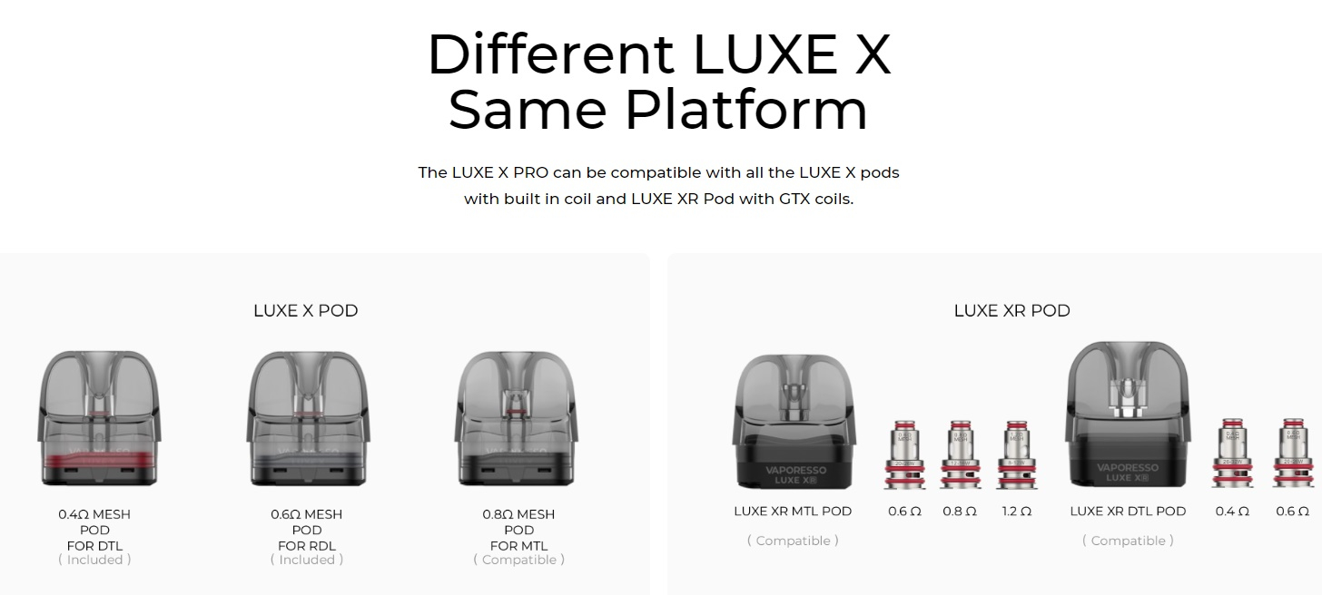 • 1x Luxe X 0,4 Ohm Mesh Pod