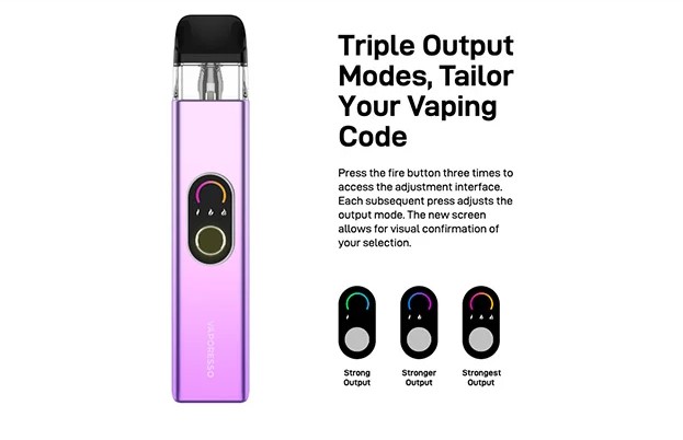 Der Xros 4 bietet drei unterschiedliche Leistungsstufen, die einfach durch Symbole und Farbänderungen angezeigt werden. Diese benutzerfreundliche Funktion ermöglicht Ihnen eine individuelle Anpassung Ihres Dampferlebnisses und wird durch den verstellbaren Luftstrom am Hinterteil des Pods weiter verfeinert.
