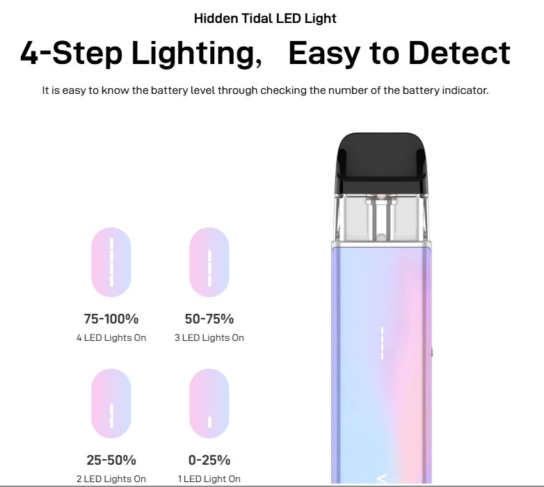 Der Vaporesso Xros 5 Mini ist die neuste Version des sehr beliebten Vaporesso Xros. Im Gegensatz zu anderen Herstellern, verbessert Vaporesso die Modelle der Xros-Reihe jeweils im Detail, behält aber grundlegendes bei. So sind auch der Xros 5 und der Xros 5 Mini mit allen verfügbaren Xros Pods kompatibel. Im Vergleich zum Vorgänger, dem Xros 4 Mini, wuchs beim Xros 5 Mini der Akku nochmals ein Stückchen an und misst nun satte 1500mAh. Über den seitlichen USB Type-C wird der Akku mit 2A/5V zügig wieder geladen. Ebenfalls neu ist die LED Anzeige für den Akkustand. Hatte der Vorgänger nur eine LED, kommen beim Vaporesso Xros 5 Mini nun 4 Status-LEDs zum Einsatz, die den aktuellen Akkustand noch ein bisschen genauer anzeigen.