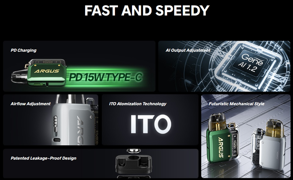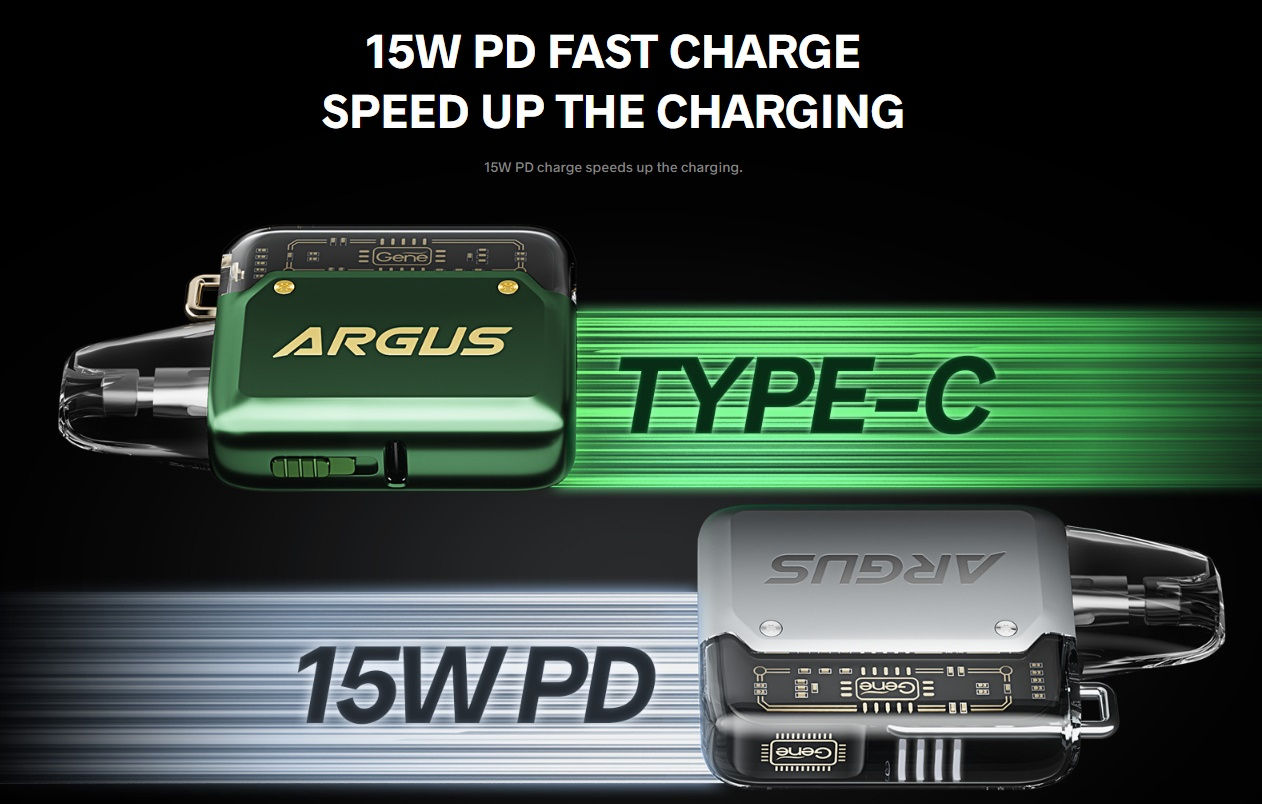 Der Voopoo Argus P1 ist der jüngste Spross in der Argus Pod Familie und kann dabei gleich mit mehreren Features glänzen. Der Voopoo Argus P1 hat einen Akku mit 800mAh, welcher dank des USB Type-C Anschlusses mit Fast Charge innert 18min geladen werden kann. Dank des verbauten Gene AI 1.2 Chips hat man nicht nur alle wichtigen Schutzfunktionen an Bord, dank der smarten Zugautomatik muss man sich auch keine Gedanken bezüglich Leistungseinstellung machen, dies geschieht alles automatisch. Der Chip regelt die Leistung anhand der Zugstärke von alleine und dank der einstellbaren Airflow, kann das gewünschte Zugverhalten eingestellt werden.