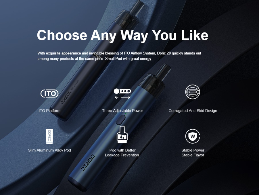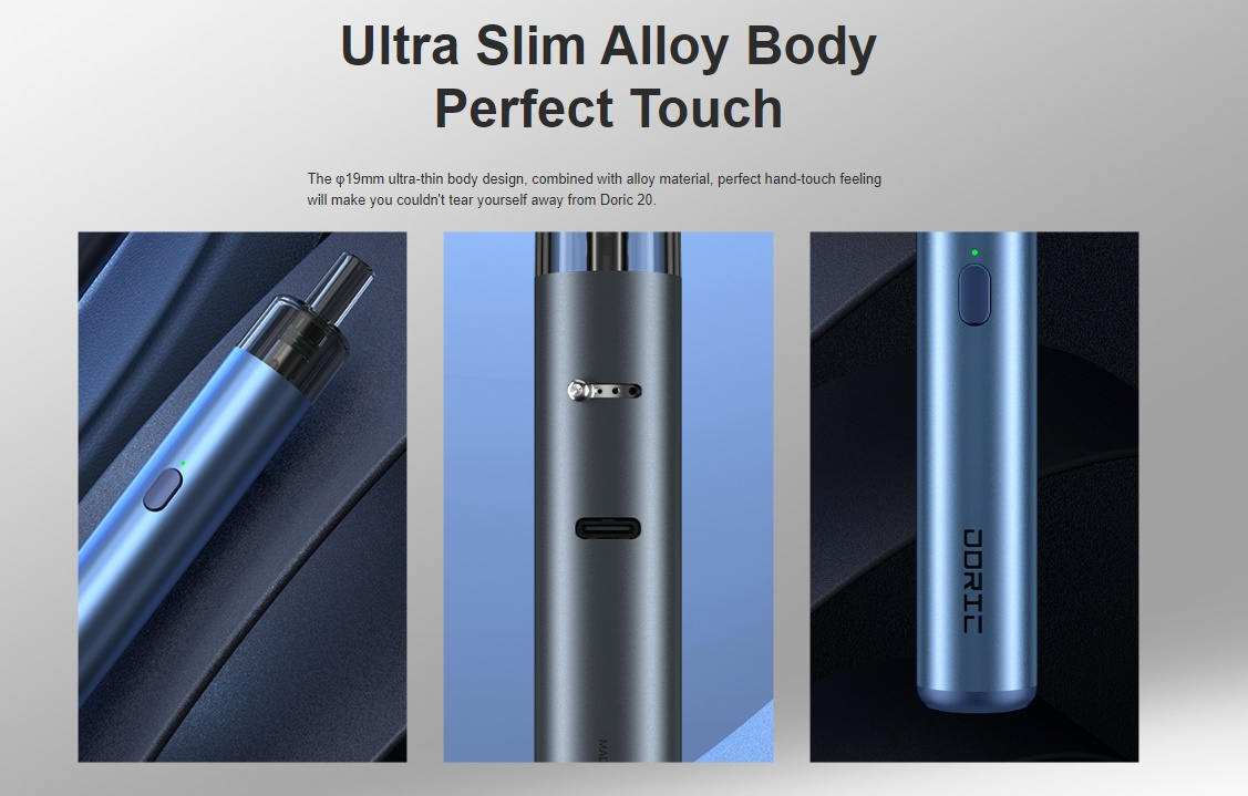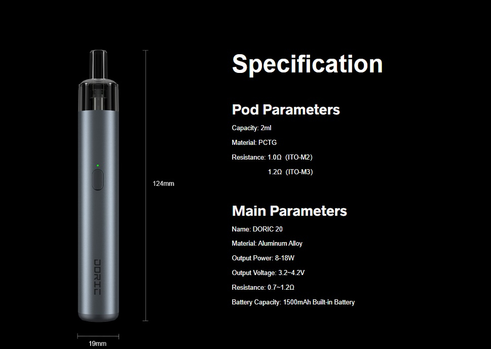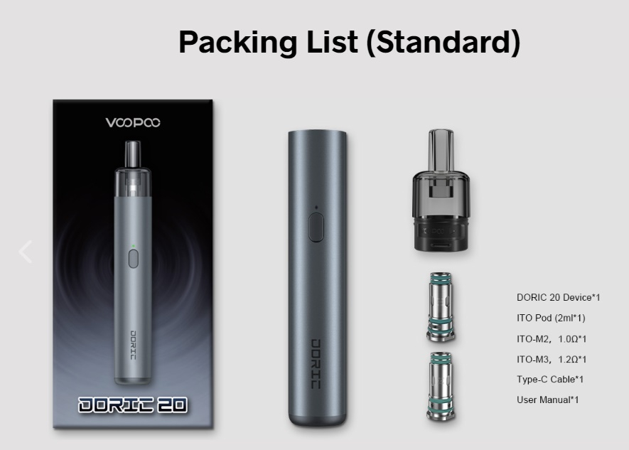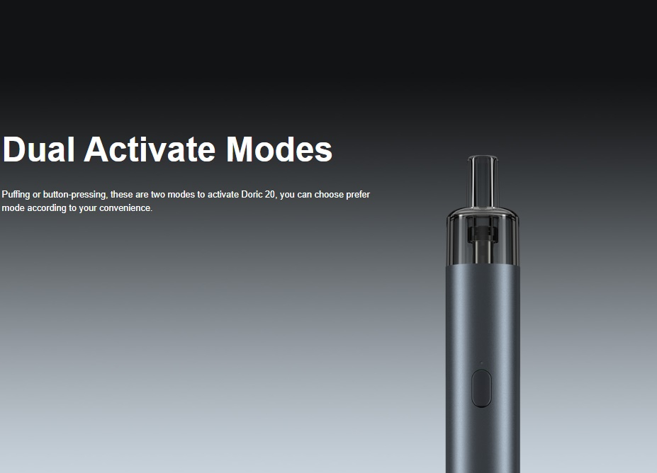 Das Doric 20 Kit von Voopoo richtet sich ganz klar an Dampfer, welche einen Pod Mod für den MTL-Gebrauch suchen. Der Voopoo Doric 20 besitzt einen festverbauten Akku mit einer Kapazität von 1500mAh. Aufgeladen wird dieser über den seitlich platzierten USB Type-C Anschluss mit einem Ladestrom von max. 1,5A. Damit lässt sich der Doric 20 innert 1h voll aufladen. Dieser eignet sich ideal für ein RDL bis MTL Dampferlebnis. Befüllen lässt sich der Pod des Voopoo Doric 20 ganz bequem über das seitliche Füllloch.