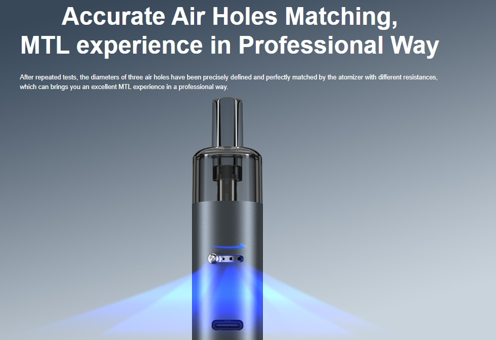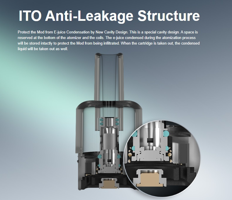 Im Gegensatz zum grossen Bruder Doric 60 kommt beim Doric 20 ein neuer Pod zum Einsatz, welcher für die Nutzung der ebenfalls neuen ITO Cois gemacht ist. Die ITO Coils gibt es aktuell in zwei Versionen: den ITO-M2 1,0 Ohm und den ITO-M3 1,2 Ohm. Diese werden einfach von unten her in den Pod gesteckt. Der Doric 20 bietet 3 verschiedene Leistungsstufen, welche man einfach durch dreimaliges betätigen des Tasters einstellen kann. Der Taster dient zudem als Ein-/Ausschalter und kann auch als Feuertaster genutzt werden, wobei dies beim Doric 20 dank der Zugautomatik eigentlich nicht nötig ist. Ebenfalls seitlich befindet sich der Regler für die Luftzufuhr, welche man ganz nach eigenem Geschmack von leicht offen bis restriktiv einstellen kann.