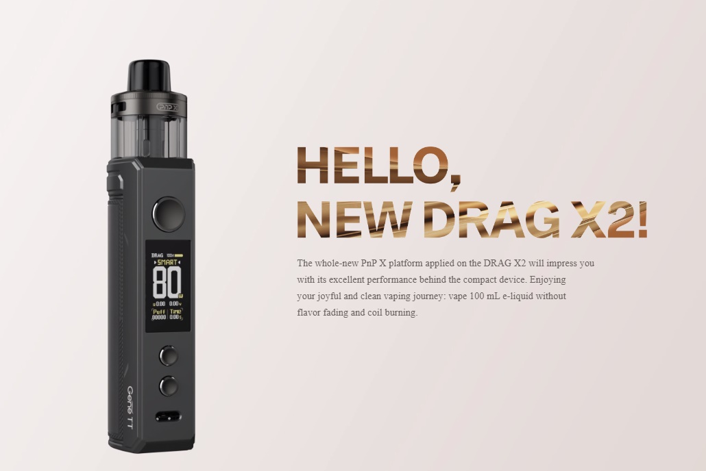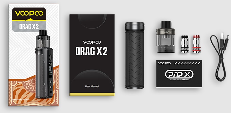 Der Voopoo Drag X2 ist die neuste Version in der beliebten Drag X-Reihe. Im Vergleich zu den früheren Modellen hat sich jedoch einiges geändert. Der Drag X-2 verfügt nun über einen 5ml fassenden Pod Tank mit Top Airflow. Dadurch reduziert sich das Risiko eines siffenden Tankes. Ebenfalls neu sind die Coils, denn der Drag X-2 nutzt nun die neuen PnP-X Coils (die alten PnP passen nicht in den Drag X-2). Im Gerät ist der Gene.TT 2.0 Chip verbaut, welcher dem Nutzer 3 Betriebsmodi bietet: Smart, RBA oder Eco. Im Smart Modus stellt der Drag X-2 die Leistung anhand des Widerstandes selbst ein und erlaubt keine Regelung über das empfohlene Maximum. Im RBA Modus wiederum kann der Nutzer die Leistung frei wählen und auch über das empfohlene Maximum gehen. Der Eco Modus wiederum soll für eine lange Akkudauer sorgen.